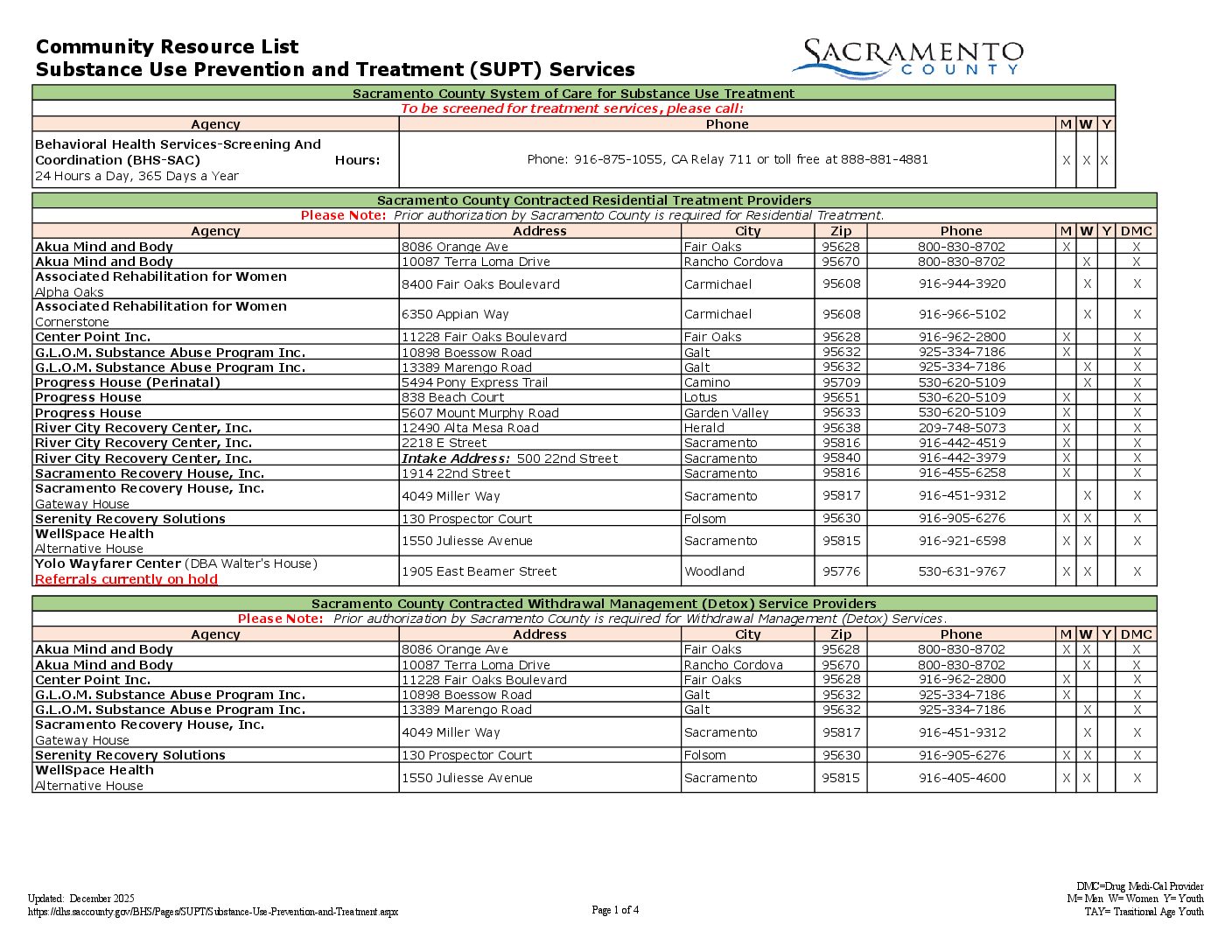 Substance Use Prevention and Treatment (SUPT) Community Resource List